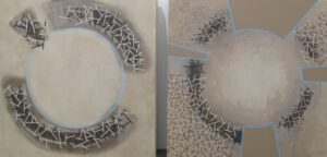El desierto de Ica, las líneas, que recuerdan el efecto del viento sobre la arena o las ruinas de Pachacamac han sido para Ricardo un mero pretexto para crear y hacer pintura, para él, el tema de asumir un paisaje y hacerlo propio es esencial, “ sabes que es tuyo y que te moviliza profundamente, que te vincula con todas sus facetas y con todo lo que ello pueda significar.”