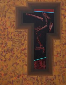 Su actual exposición viene a mostrar una nueva meta que paulatinamente se venía apreciando en exposiciones anteriores, donde introduce nuevos elementes a la propuesta que hiciera conocida y que hoy llega a una nueva vertiente.