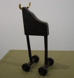Chalo Guevara nació en Arequipa en el año 1957. Se traslado a Lima en 1965 y luego en 1986 a Nueva York. Desde el año 2000 vive y trabaja en San Francisco. Es bachiller en Bellas Artes del PUCP, sus últimas exposiciones en Perú han sido “Pinturas previas al combate”, en la Galería Forum en 1999 y “El viaje”, en la Galería Artco en el 2003. Esta vez nos sorprende inmensamente con una muestra de esculturas, disciplina no muy común en su obra que siempre nos ha mostrado cuadros llenos de luz y color, es un cambio radical en el que están involucrados varios aspectos. Guevara es un artista de gran talento y capacidad de investigación es así que la sala de la galería estará poblada de personajes de madera y metal, enfrentando al espectador a su propio cuestionamiento y no cabe duda que sorprenderá. De su muestra, Chalo Guevara nos dice: El vínculo de la escultura proyectada en la imagen fotográfica contiene una doble representación: la personalidad difundida como protagonista, como individuo humanizado y la fotográfica, forma de un ser protector que a su vez simboliza el anhelo de posteridad. Personajes cotidianos desgastados por el tiempo y el amor, resultado de un periplo permanente. Ellos llevan una historia que al fundirla en la vida doméstica crean una razón que justifique su existencia. De alguna manera esperan demostrar que sus formas escultóricas somos nosotros tomando el cuerpo de cada día vivido con la ansiedad de crear un “Dios Tutelar” que prueba lo efímero que es cada momento que vivimos. Ello es la consecuencia, el fin y el encuentro con el futuro.