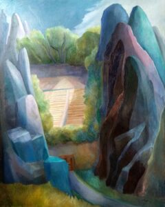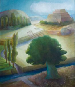 Es la serena reflexión y expresión creativa de Alejandro Alayza sobre la vida de la naturaleza reinventada desde “si mismo” en un año de investigación. Constructor activo de atmósferas de paz, pinta, con sencillez, libertad, activa y feliz, paisajes, que son ensueños realizados desde una disciplina ardua e inteligente. Sus pinceles, son armas que crean espacios de cielos nuevos y nuevas tierras. Su pacto con el arte es irreductible para levantar una voz silenciosa, pintando sin arrogancia, como lucha de resistencia y vía espiritual.