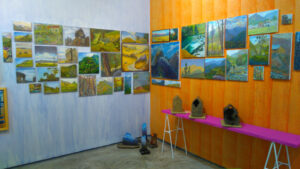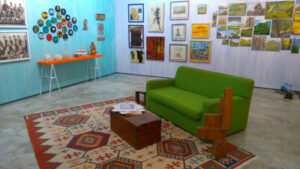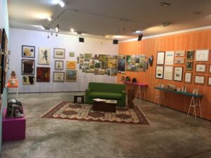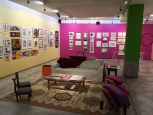 La galería se reencuentra con sus raíces y se convierte en nuestra casa, se transforma y se viste de color para recibirnos con sus muros pintados de colores y el espacio de la galería convertido en un lugar amable, lúdico y diferente donde puedes sentarte, tomar un café, y disfrutar de una selección de obras que comparten el espíritu especial de este mes.