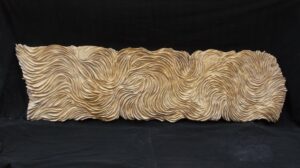 Portadores de un peso que las manos intentan aliviar, poseídas por su propia carga, una que hay que liberar. Manos que avanzan sin miedo pero atentas a lo que el travertino les calla, un aliado más fuerte que ellas. Siempre hay sorpresas, una veta anaranjada un color verde por dentro.