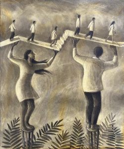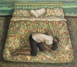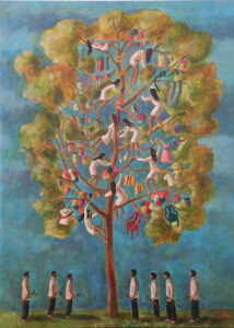 Su propuesta es una búsqueda constante de humanidad dentro de una ciudad que día a día se reconstruye. Ella trabaja en su pintura una forma de figuración donde a menudo la metáfora urbana desarrolla una fuerte impresión onírica, sus personajes, paradójicamente ubicados en paisajes imposibles y situaciones cotidianas en un juego de contradicciones, nos hablan del individuo y cuestionan su relación con el entorno, el tiempo en el que existen y el rol que desempeñan en el espacio social que habitan.