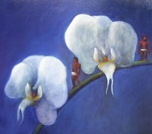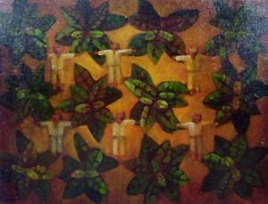 Una muestra bipersonal que reúne obra y espíritu, el lenguaje usado por cada una de estas artistas es personal, escultura María Gracia, pintura Denise. Ambas son egresadas de la Pontificia Universidad Católica del Perú en la década de los 80 y dueñas de un discurso plástico coherente y solvente. Desde su época de estudiantes sobresalieron nítidamente, María Gracia con su capacidad de desenfado para transformar la realidad con el cincel y Denise con su trabajo en pintura siempre cuestionante lleno de humor y de color. En esta oportunidad presentan cada una 24 piezas de pequeño formato. En sus pequeñas monumentalidades, María Gracia de Losada, quien domina con pureza y estilo la piedra de Huamanga, el mármol y la madera, logra volúmenes cargados de movimiento y fuerza..Los óleos de de Denise Mulanovich, esta vez sobre tela, tienen esa ambigüedad inquietante de la alteración de las escalas, con personajes diminutos sumergidos en inmensos follajes. El talento de estas dos artistas sorprende por su capacidad de replantearse objetivos, su capacidad de renovación y de fijarse nuevas metas de las que han salido siempre airosas.