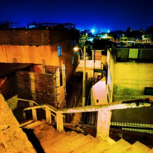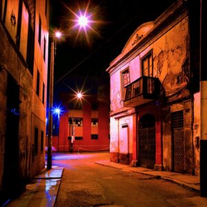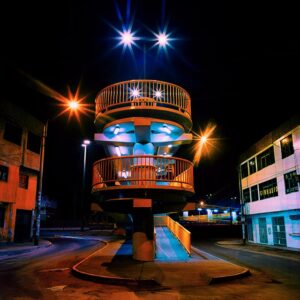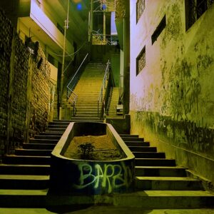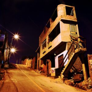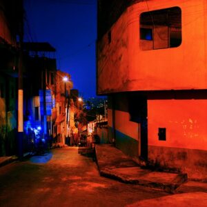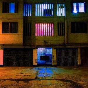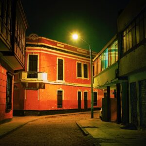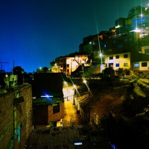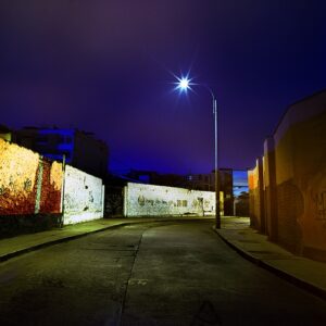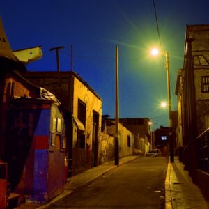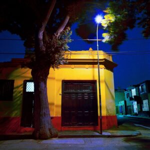 Santiago Bustamante es un cazador nocturno de escenas robadas a una ciudad dormida. Rescata paisajes latentes, invisibles a primera vista del peatón urbano. Recorre los rincones desolados de lo que llama la «Lima periférica», una incursión en el corazón de la noche que permite el encuentro entre dos soledades: el artista y la ciudad.