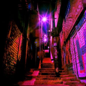 Tras una técnica mixta analógica/digital, el resultado produce imágenes poéticas de una inquietante belleza donde la luz del alumbrado público se convierte en estrellas, y las fachadas de día grises y eclipsadas por el constante ajetreo adquieren colores intensos y brillantes, matices que nos recuerdan a una paleta expresionista.
