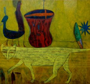 Artista generador de mitos y narrativas cargadas de ironía, su pintura  transita entre la figuración y la abstracción con gran soltura y libertad, estupendas obras de gran y mediano formato son las que nos muestran una vez más su gran talento y lo gran pintor que es.