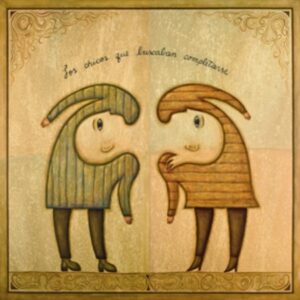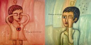 Cada obra presenta un universo personal que con inteligente simbolismo busca una frase cuidadosamente elaborada o seleccionada por el artista, que sumada a la propuesta del cuadro da sentido a mensajes alusivos a emociones y afectos -a la condición del ser como ente sensible dentro de la complejidad de las relaciones humanas, contenidos con frecuencia además en los procesos de las relaciones de pareja.