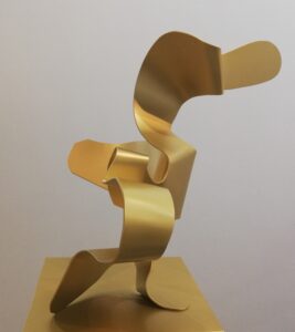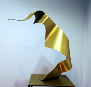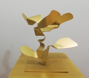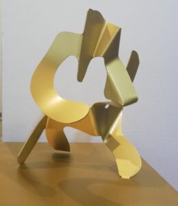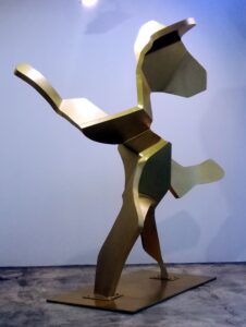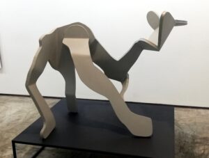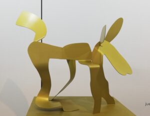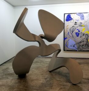 Sus fantásticos personajes toman forma, cobran volumen y los presenta en aluminio pintado como esculturas de grande y mediano formato. Eso sí, acompaña su muestra con pinturas de factura reciente.